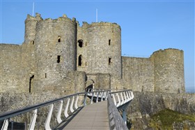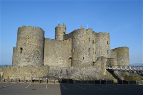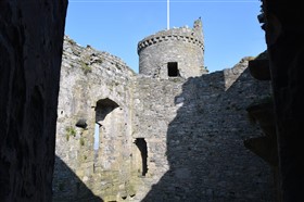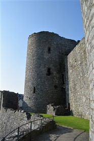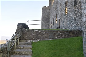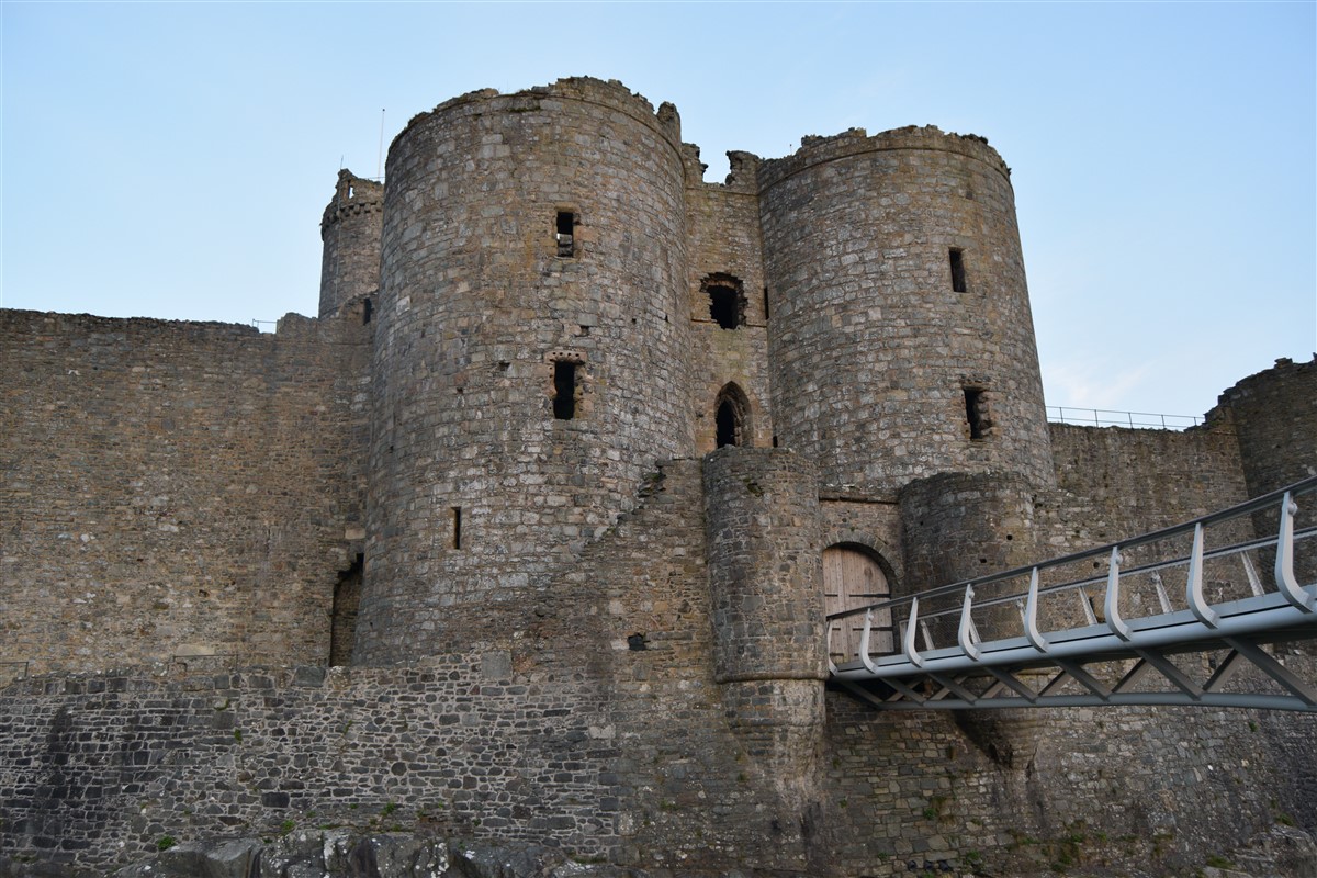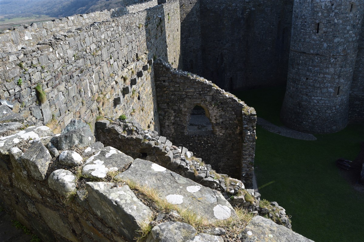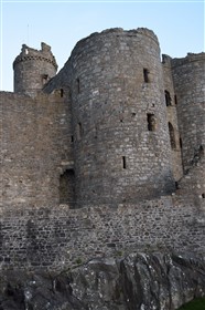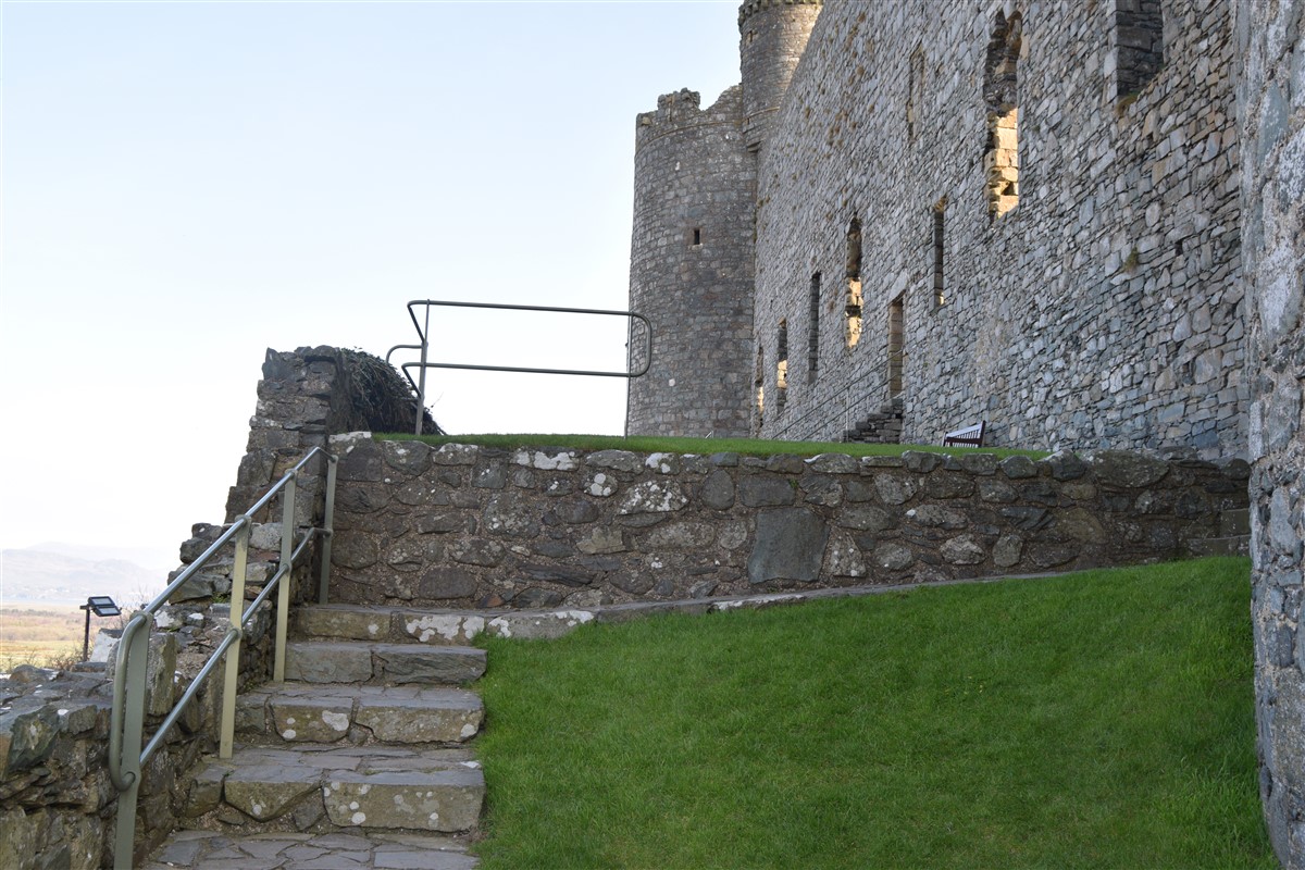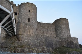 Harlech Castle is a spectacular castle, with its picturesque setting enhanced by being based on a rocky crag overlooking the sea with the Snowdonia Mountains in the background. Harlech Castle was one of a series of castles established in north Wales by Edward I after the death of Llywelyn ap Gruffudd in 1282. Building work began a year later in May 1283, and was raised in two main building phases. In order to adapt to the restricted space of the rocky outcrop, the building is based on the concentric walls within walls. The castle is designed in symmetrical fashion, with four corner towers and an impressive gatehouse. Originally, its unique position was chosen as it was eminently defensible and was built to take full advantage of its seaside location. By 1289, the castle was largely completed. The castle was strengthened in 1295 and again in 1323 and came to prominence during the Welsh rebellion led by Owain Glyn Dwr, when in 1404 the castle became occupied by Glyn Dwr’s court and family until 1409, the year it was retaken by the English. There were to be another two sieges, the first being in the War of the Roses when it was taken by Yorkist forces in 1468. It is argued that the famous song ‘Men of Harlech’ originated during the siege at Harlech during the War of the Roses in 1468.The second during the Civil War when it was surrounded by parliamentarian forces in 1647. Sections of the castle were rendered untenable after these sieges, fortunately however the order to demolish the castle were never carried out. (Coflein–M. Lloyd Davies, RCAHMW, 22 October 2008)