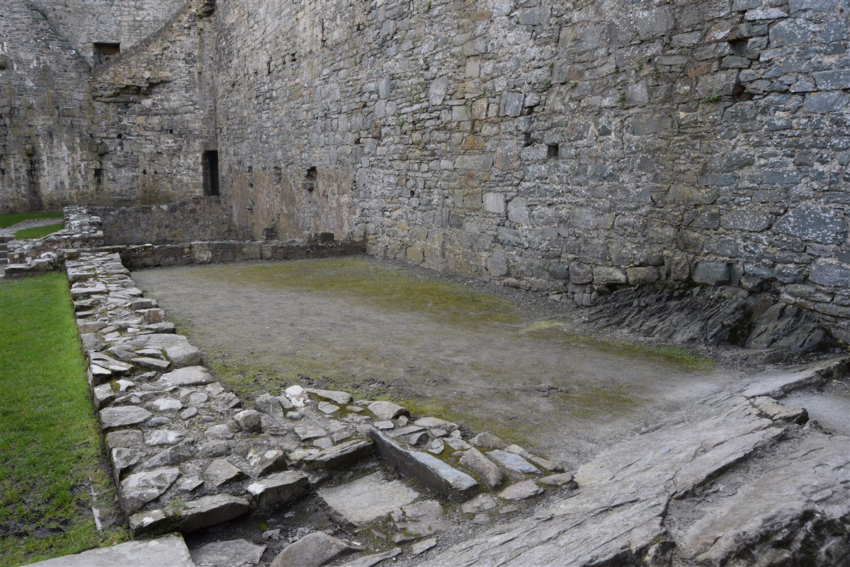 Paul Remfry is suggesting that the castle originated as a welsh llys and C13 welsh castle before being converted into the Edwardian castle that remains. His interpretation of the documentary evidence is suggestive and worth considering. There are some flaws in his interpretation of the archaeological and building remains evidence and the polemic and apophatic nature of his text often works to the disadvantage of the interesting arguement he is making.