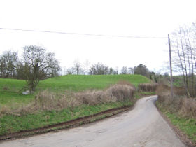 A castle at Dingestow is recorded as being constructed 1184 and further noted in 1469. The earthwork remains include two enclosures, the upper being sub-rectangular, about 54m by 38m, the lower adjoins on the south-east and is about 36m by 60m. The castle is defined by ditches, or moats, except to the north-east where it is sited above a stream. There is a counterscarp to the north-west. Excavations in 1969 failed to locate any substantial masonry structures. (Coflein)