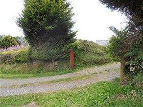 Castell Mael is an oval enclosure, measuring c.84m NE-SW by 58m. It occupies a promontory above a stream confluence, resting on steep scarps except on the east, where the entrance is set in a single bank. (Coflein)