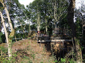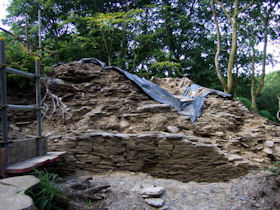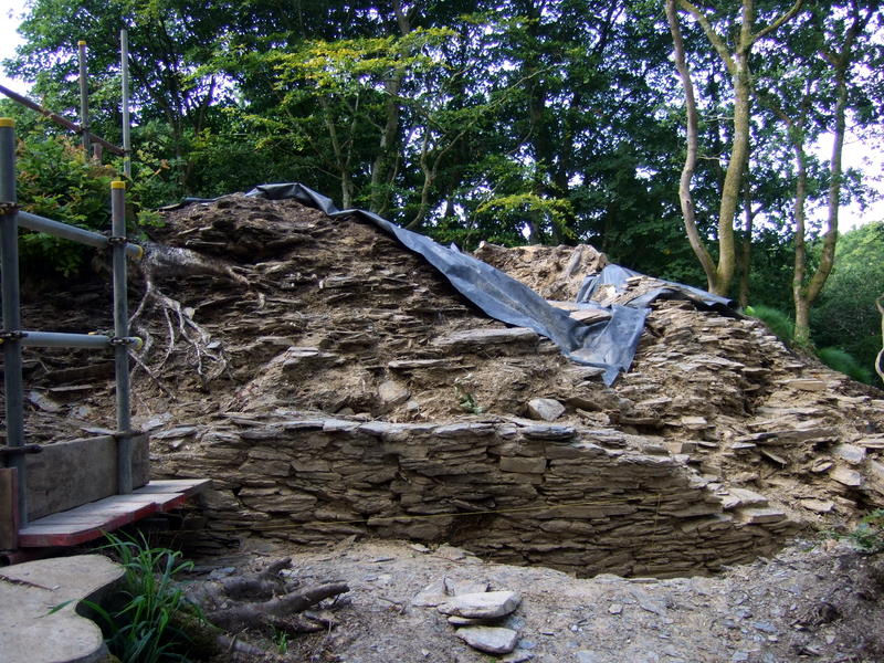 Excavations in 2015 at Nevern revealed evidence of pre-Norman Welsh agricultural activity on the site as well as the presence of a pre-castle ‘colonisation’ Anglo-Norman earthwork and occupation. The establishment of a substantial building and occupation sequence throughout the late 12th century now clearly suggests a mid-12th-century date for the re-construction of this castle in stone. This activity was probably initiated or supported by the Lord Rhys. The use of slate quarried from the castle ditches and mortar formed from the clay subsoil means that only readily available local resources were needed to transform this site into a substantial stone castle. (Caple 2016)