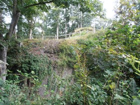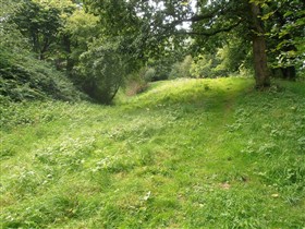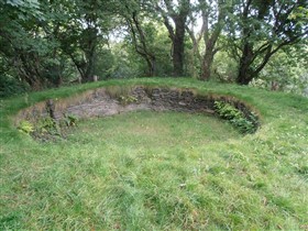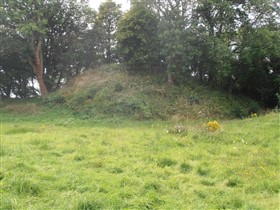 Castell Nanhyfer, an inland promontory enclosure, some 100m east-west by 90m, resting on steep natural slopes and crags on the south-east, is delineated by up to three lines of banks and ditches on the north and west, with a circular mound, about 32m in diameter occupying its north-western angle. The outward banks are the most massive and the northern facade shows remains of a stone revetment. A circular tower, in the region of 6.5m across, has been identified upon the motte summit; the eastern tip of the promontory, rising above precipitous crags, is cut off by a rock-cut ditch, forming a court, about 30m north-south by 20m, defined by stone walls and containing traces of a rectangular structure, possibly a tower. The entrance to the castle enclosure is thought to have led between the crags on the north, the massive north-facing ramparts, and the stone-walled citadel. Identified as a 12th-early 13th century castle, possibly of several distinct constructions, thought to have been abandoned in the earlier 13th century. (Coflein)