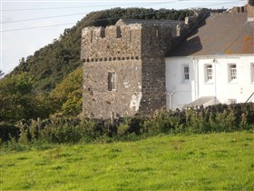 Situated some 0.75 km NW of Rhoscrowther Church and close to Texaco Oil Refinery. Medieval tower house of C14 to early C15 date. Tower house: Rubble stone, embattled, with vaulted ground floor and first-floor hall reached by added W side outside stairs. A narrower, possibly slightly later, rear wing has vaulted room on each floor and an embattled turret which crowns the stair in the re-entrant NW angle, leading from first floor to the wall walk behind the battlements