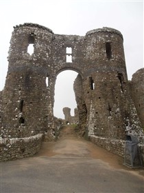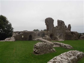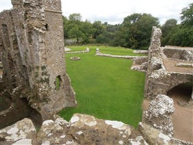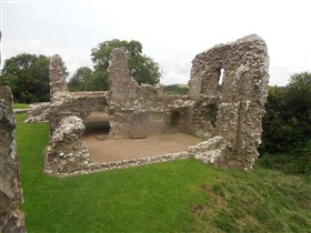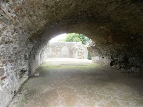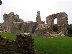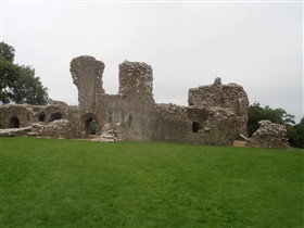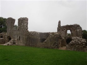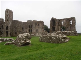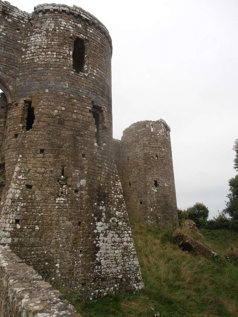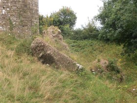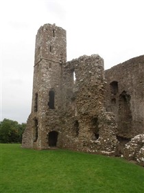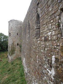 Llawaden Castle was originally an earth-and-timber ringwork, built circa 1115 on the frontier between Welsh and Norman/Flemish occupied regions, but was razed to the ground in 1193, and it was not until the Normans began to gain control in the region in the early thirteenth century that the site was refortified with a masonry curtain and several towers. Bishop Bek (1280-93), seeking to develop the See of St. Davids, created the borough of Llawaden (NPRN 268099) and invested heavily in the region, building a hospital in 1287 (NPRN 32084). There is no evidence of work being carried out on the castle, however, until the episcopate of Adam de Houghton (1362-89). It is to this period that the majority of the visible remains date. Llawaden Castle was abandoned as a residence in the fifteenth century, but remained in administrative use, acting as a bishops prison, until the Reformation, following which it rapidly fell into decay. The dried moat encircles an oval area roughly 55m across, upon which can be seen the ruins of a twin-towered gatehouse, a winged building which contained the great hall, kitchens and bishops’ chamber, residential apartments, chapel and lodgings. The remains of two polygonal towers are well preserved, and the base of the original thirteenth century round tower is still in evidence. (Coflein–ref. Turner, 2000)