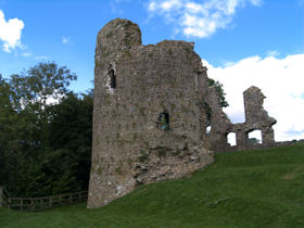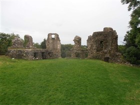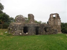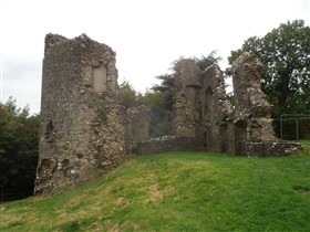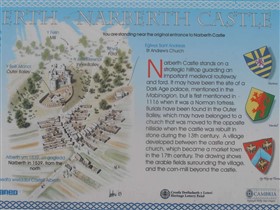 The visible remains of the single ward Narberth Castle are thought to date from the mid-thirteenth century and later. They include a rectangular enclosure approximately 40m north to south by 20m with the ruins of two quarter-engaged drum towers and traces of a curtain wall with two semi-cirular bastions to the west of the enclosure. To the east is a vaulted cellar, the remains of a tower, and evidence of two garderobes. The castle is first mentioned in 1116 and was possibly occupied until the seventeenth century. It is described in a survey of 1539. (Coflein)