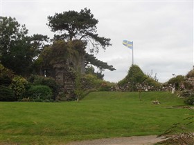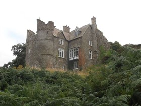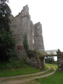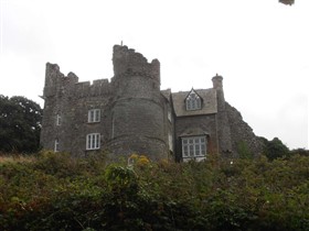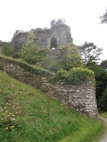Newport Castle was established in 1191, but there is no surviving fabric thought to pre-date the late thirteenth century. The surviving remains include a curtain wall and of four towers at the angles of the work, one of which, the gatehouse, now forms a private residence built in 1859 in a nineteenth century romantic style. The residence has an L-shaped plan with basement, a three window front and slate eaves roof. The porch has a pointed arch and crested roof tiles. The medieval remains also include a roughly quadrilateral ringwork, c.50m across, circled by a wide moat, part of which appears to have been utlised as a fishpond. (Coflein)