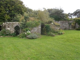 According to the Ordnance Survey Newport Castle was established by one William Martin in 1191, although no part of the surviving remains pre-date the 13th century. The castle was built on a mound, was surrounded by a ditch and comprised a gatehouse with flanking towers, three other towers and a curtain wall. The OS record states that the Hunters Tower, on the north-west of the castle ward,contained traces of an Early English fireplace. This record also states that the south-west tower survived as a grass covered mound, while that on the south-east was D-shaped and jutted out into the moat. A later OS record notes that this "moat", shown on the 1st edition 1:2500 map, was probably an adaptation of the castle ditch as an ornamental fish pond that is now silted up. The scheduling description of 1996 records this as the remains of a medieval castle, the gatehouse of which has been altered (through the demolition of the eastern flanking tower) by a 19th century domestic building. A 14th century vaulted undercroft is described as "one of the better preserved medieval structures to have survived the ravages of time". (Dyfed Archaeological Trust HER)