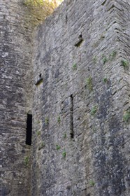 The character of Barnard's tower is interesting. With its windows, fireplace and latrine, it is a comfortably arranged set of quarters by mediaeval standards; with the portcullis, a bridge of some and barred doors, it was a separate stronghold; one might almost call it Pembroke Castle No. 2. It would seem that the earl wished to keep one of his officers here, at the exposed end of the town and half a mile from the castle, giving him strong and habitable quarters. (Abridged from King and Cheshire 1982)