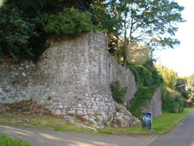 The town walls, of probably late C12 to early C13 origin, are shown in Speed's map and on the C17 'French' map, but little of medieval date appears to survive above ground . It is possible that the rear garden walls to properties on both sides of Main Street may either incorporate some foundations of the medieval walls or may be built in several places on their course. The walls along the S side include two medieval towers (Scheduled Ancient Monuments), and are otherwise mostly garden end walls possibly on the foundations of the medieval walls or built on their course. The walls run from No 5 Common Road to Rock Terrace.