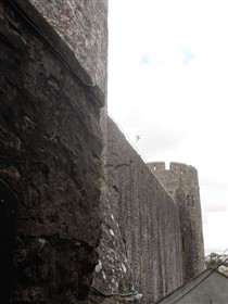 Clearly there are difficulties with the dating of the town walls. The site is natural strong and would not need much work to make it defensible. The town was not attacked during the wars of the C13, Soulsby writes 'no doubt because of the sheer impregnability of the site'. However, walls and, particualrly gates, would have increased the defensibility and also enhanced the town status and tax collection effectiveness. Soulsby writes 'Medieval Pembroke was a prosperous community with a viable commercial life' but walls did not protect the town from decline of maritime trade (lost to Haverfordwest) and like many towns in Wales it declined in the C15, although this decline cannot, as it usually is, be blamed on the Glyndwr revolt, since Pembroke was not attacked.