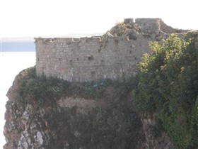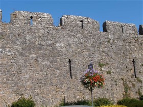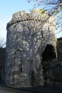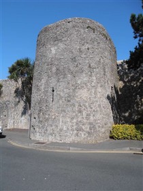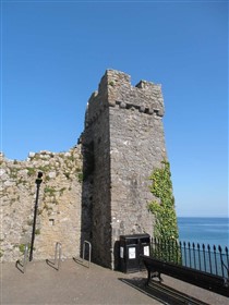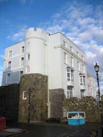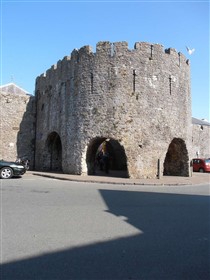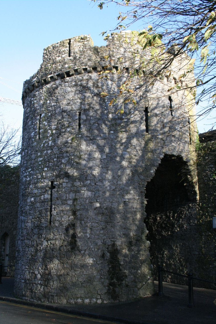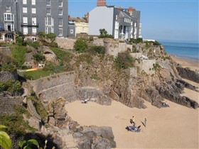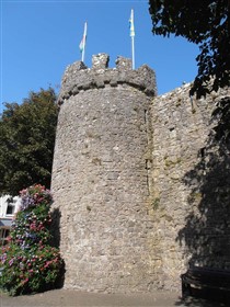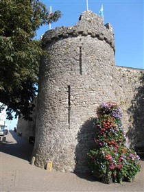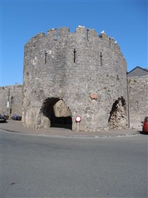 There are extensive remains of the medieval town walls at Tenby which were originally built in 1245. They were re-built in 1457 after a period of neglect and are constructed from rubble stone with a crenelated parapet and arrow loops. The landwards defences are substantially complete, with five mural towers and a gate complex. Elsewhere, along the coastal cliffs, scraps of retaing walls and a turret, or tower (at SN13580033) may have belonged to the defensive scheme. (Coflein)
