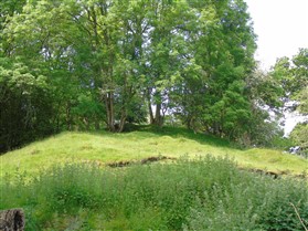 The motte is surrounded by a ditch and counterscarp on all sides but the south-east, where the natural cliff of the gorge provides sufficient protection. This site would have been succeeded, probably in 1284-85, by the nearby stone castle (Scheduled Monument RD029). The mound may have seen further use as a viewing platform in relation to the gardens of the much later nearby mansion. (Scheduling Report)