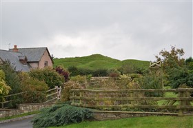 The monument comprises the remains of a motte and bailey castle, a military stronghold built during the medieval period. A motte and bailey castle comprises a large conical or pyramidal mound of soil or stone (the motte) surrounded by, or adjacent to, one or more embanked enclosures (the bailey). Both may be surrounded by wet or dry ditches and could be further strengthened with palisades, revetments, and/or a tower on top of the motte. Pain’s Castle, also known as Castle Matilda, is a large, turf-covered motte and bailey castle with the motte placed at the southern end of a roughly rectangular bailey. The motte is surrounded by its own ditch, which in turn is connected to the ditch around the bailey. The motte reaches a height of c.11m above the ditch on the south side and 6.5m on the north, while its irregular summit, which may well conceal traces of masonry, measures c.18m north-south by c.15m. A break in the north-west side of the motte ditch appears to lead into the bailey and more specifically, to a circular area which projects into the main bailey ditch, and may represent the position of a round tower. Around the bailey ditch lip there are signs of a curtain wall in the form of a continuous low mound beneath the turf. Low mounds on the east side of the bailey probably represent the sites of domestic buildings. The bailey ditch has a maximum depth of c.6m on the north side. The outer bank, which runs around both motte and bailey, rises c.4.5m above the ditch bottom; on the east and north-east it has been damaged by later activity. The castle is thought to have been built by Pain FitzJohn in c.1130, and withstood a siege by the forces of Powys in 1198. Modifications in stone are attested from 1231 onwards, but the castle was destroyed by Owain Glyndwr in 1401. A slighter outer enclosure around the west and north of the castle may represent the position of an associated borough. (Scheduling Report)