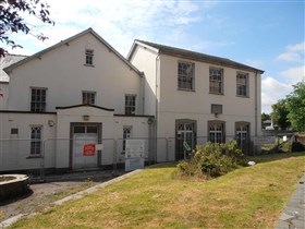 Below the Cathedral; N side elevation to Deiniol Road and outbuildings to E.