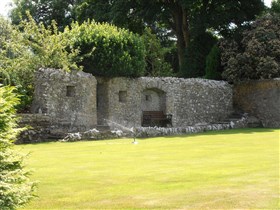 Residential manor house of the bishop of Llandaff. Length of wall 15m long and 2.5m high with doorway and windows included in barn.