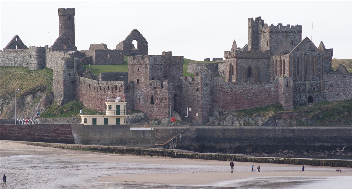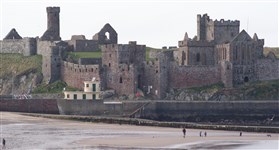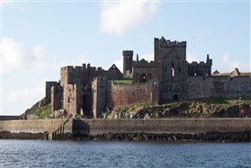 Rocky island in mouth of harbour; an old sacred site with a cathedral and another church on it. Probably one of Magnus Barefoot's wooden forts of 1098 and known as 'Pile' as early as 1231. A gift to the Church in 1257, but the site was too important to be abandoned. Earliest existing defences lie on the approachable side towards the mainland; a square tower appears to be the earliest work, with a large square gatehouse, barbican, curtains and turrets, built soon after 1392. The other sides of the island enclosed in a remarkable line of walls in the later 15th century, flanked by various towers, mostly rectangular with round corners. Two of these are massively built, one forming a spur-work. Henrician additions are an extension of the spur with a rounded tower for artillery, and a round battery inside the castle. Likely to have been taken several times, e.g. 1313 and 1388; captured 1651. (King 1983)