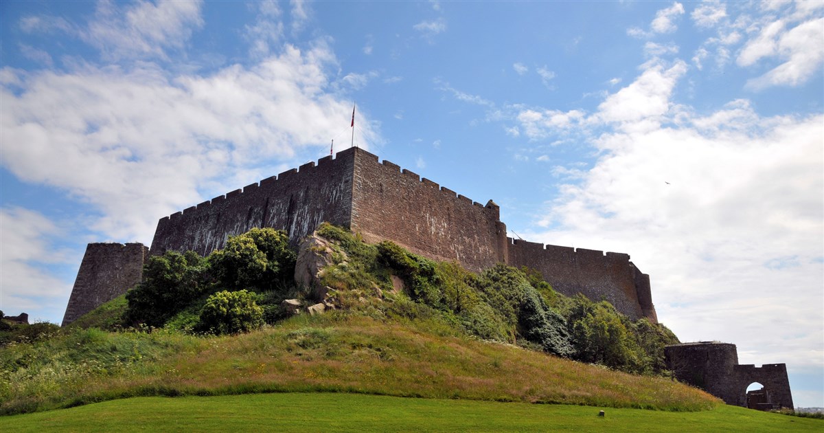 The fort seems to have been finished in 1601, and the date is carved in the rock with what appears to be a merchant’s mark (possibly that of Thomas Soulemon, the constable of Jersey, who signed the accounts). In 1600, Sir Walter Raleigh had succeeded the last of the Paulets and during his three year tenure of the captaincy the first of several extensions to Elizabeth Castle was made, consisting of a new enclosure near the gateway, adding to its security and at the same time accommodating a second tier of cannons to command the channel leading into the haven. (HKW)
