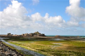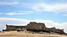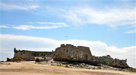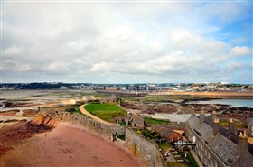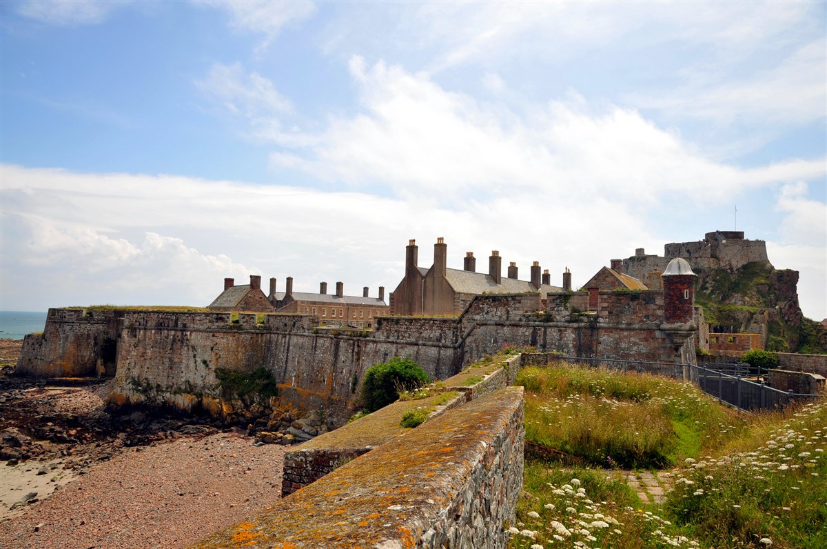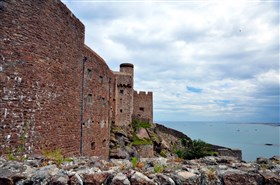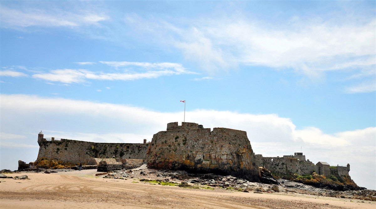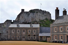 In 1593-94, therefore, two works where put in hand. Out of respect for the old fortress, into which so much money had been sunk, it was given some finishing touches, including the still existing gateway at the middle ward gate with the queen's arms and the date 1593. But for the more effective defence of island a new fort was begun on St. Helier’s Islet. On 10 May 1593 there was a warrant for £600 which must have been intended for Gorey and on 14 March 1594 a warrant totalling £500 issued for the fort on the islet.