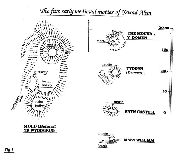 Tynewydd Mound, LeeswoodMound has appearance of a tumulus but tenants maintain it is natural. Erosion by river reveals gravel composition which may suggest it is natural (Davies 1949, 246-7). Pronounced circular mound 16m diam and 2m high. On high ground on lip of a deep stream cutting into S side of mound revealing packed gravel and glacial pebbles (OS 1959). Apparently artificial mound with flat top in strong defensive position. shape and position typical of a small motte (OS 1975). Not possible to determine whether this site is a motte or a barrow. Its position is defensive and it has a flat top. On balance, probably a motte, but no trace of a bailey. Eroded on its very steep SE sideMold Civic Society Journal Ystrad Alun Issue #3 (2002)View details